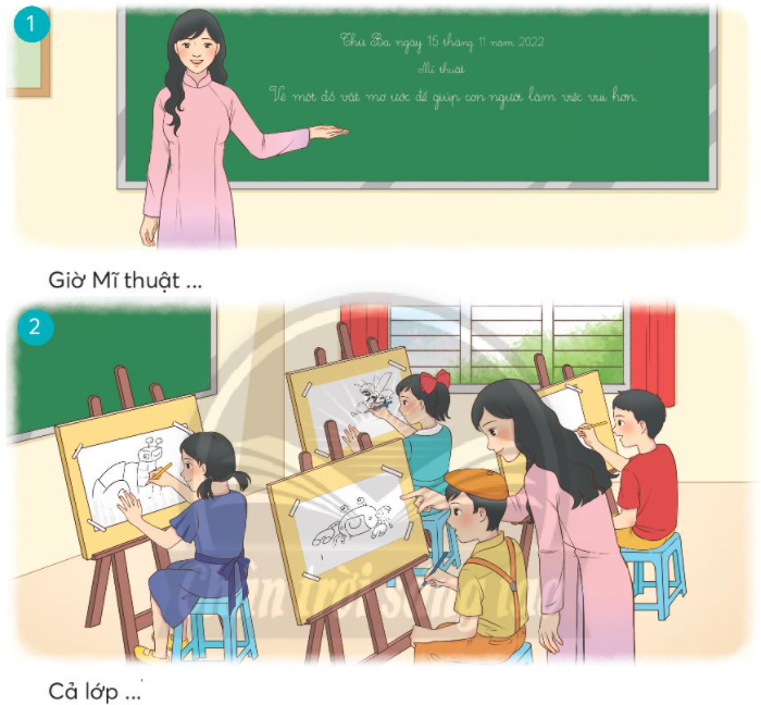 1. Giờ Mĩ thuật, cô giáo dạy Mĩ thuật nói với cả lớp rằng mỗi bạn hãy vẽ lại đồ vật mơ ước của mình.