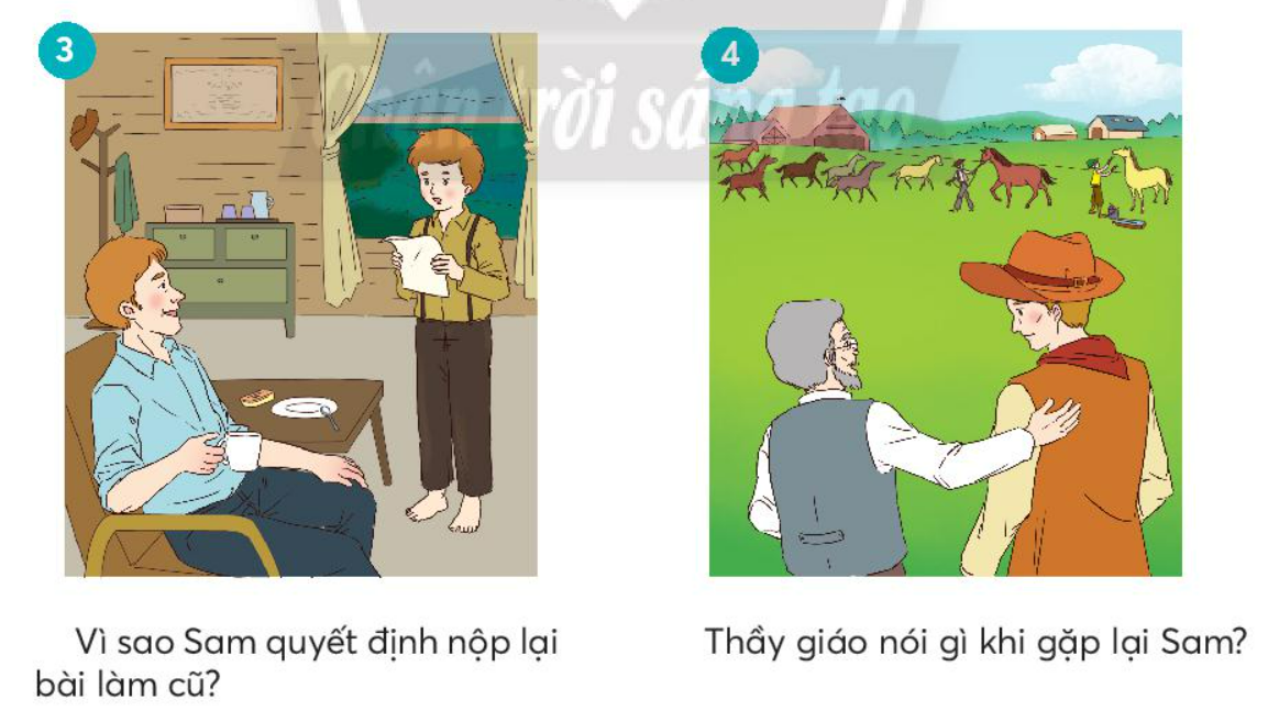 2. Một hôm, thầy giáo ra đề bài: “Lớn lên, em muốn làm nghề gì?”. Khi các bạn viết sẽ trở thành bác sĩ, giáo viên, diễn viên, người làm vườn,… thì Sam viết cậu muốn làm chủ một trại nuôi ngựa. Cuối giờ, thầy giáo gặp Sam, ân cần nói: