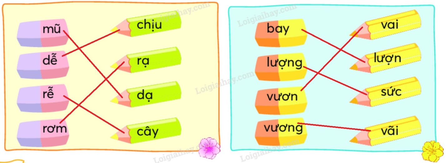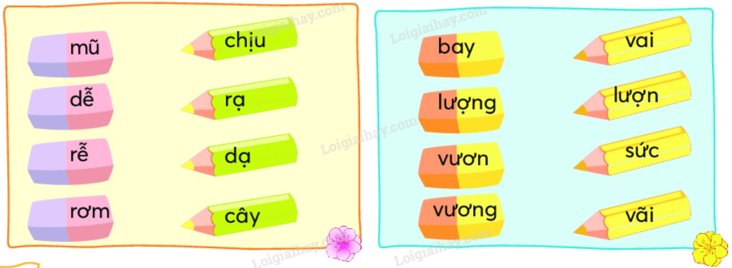 c. Chọn tiếng ở bút chì phù hợp bới tiếng ở tẩy