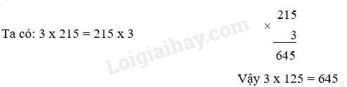 Dùng tính chất giao hoán để tìm kết quả của phép tính: 3 x 215