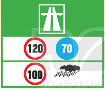 Đường cao tốc, tốc độ tối thiểu 70km/h. Tốc độ tối đa 120km/h. Tốc độ tối thiểu khi trời mưa 100km/h.