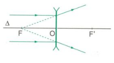 Ta có: Tia tới có phần kéo dài qua tiêu điểm khác phía với tia tới so với thấu kính.