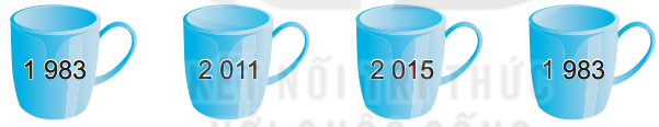 Cốc của bố và mẹ ghi hai số bằng nhau vì bố và mẹ sinh ra trong cùng một năm, vậy cốc của bố và mẹ ghi số 1 983.