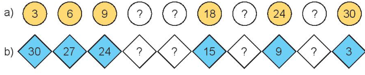 Đếm thêm 3 đơn vị hoặc đếm lùi 3 đơn vị rồi viết số còn thiếu vào ô trống.