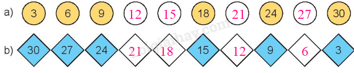 Đếm thêm 3 đơn vị hoặc đếm lùi 3 đơn vị rồi viết số còn thiếu vào ô trống.