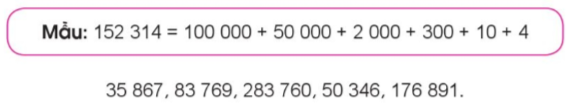 Quan sát ví dụ mẫu số viết các số thành tổng.