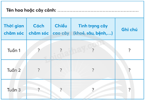 Hãy chọn một loại hoa hoặc cây cảnh trồng trong chậu để chăm sóc và ghi lại tình trạng của cây trong thời gian 3 tuần vào bảng dưới đây.
