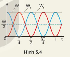 Từ \(\frac{T}{4}\)đến \(\frac{T}{2}\): Wđ giảm từ giá trị lớn nhất về 0 tại \(\frac{T}{2}\), Wt tăng từ 0 đến giá trị lớn nhất tại \(\frac{T}{2}\).