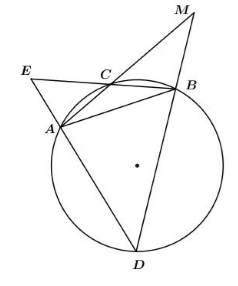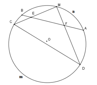 Nên \(\widehat {FMC} = \dfrac{1}{2}\)sđ \(\overparen{BC}= \dfrac{1}{2}\) sđ \(\overparen{AD}\)\( = \widehat {ACD}\)