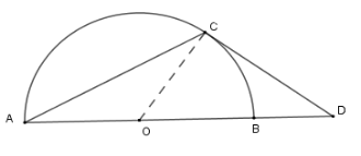 Cho nửa đường tròn \(\left( O \right)\) đường kính \(AB\) và \(C\) là điểm trên cung nhỏ \(AB\) (cung \(CB\) nhỏ hơn cung \(CA\) ). Tiếp tuyến tại \(C\) của nửa đường tròn cắt đường thẳng \(AB\) tại \(D\) . Biết tam giác \(ADC\)  cân tại \(C\) . Tính góc \(ADC\) .