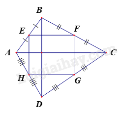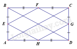 Cho hình chữ nhật \(ABCD\). \(E\), \(F\), \(G\), \(H\) là trung điểm của các cạnh \(AB\), \(BC\), \(CD\), \(DA\) và \(EF\;\;{\rm{//}}\;\;AC\), \(GH\;\;{\rm{//}}\;\;AC\);\(EH\;\;{\rm{//}}\;\;BD\),\(FG\;\;{\rm{//}}\;\;BD\) Tứ giác \(EFGH\) là hình gì?
