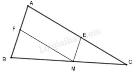 Hãy chọn câu đúng. Cho ΔABC với M thuộc cạnh BC. Từ M vẽ ME song song với AB và MF song song với AC. Hãy xác định điều kiện của ΔABC để tứ giác AEMF là hình chữ nhật.