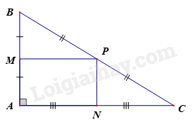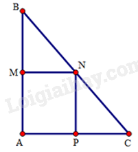 Cho tam giác \(ABC\) vuông tại \(A\). Gọi \(M\), N, \(P\) lần lượt là trung điểm thuộc các cạnh \(AB\), AC, \(BC\) và \(MP = \frac{{AC}}{2}\), \(MP\;{\rm{//}}\;AN\).Tứ giác \(AMPN\) là hình gì?