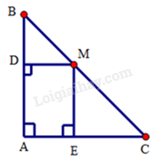 Cho tam giác ABC vuông tại A, điểm M thuộc cạnh huyền BC. Gọi D, E lần lượt là chân đường vuông góc kẻ từ M đến AB, AC. Điểm M ở vị trí nào trên BC thì DE có độ dài nhỏ nhất?