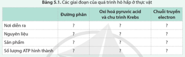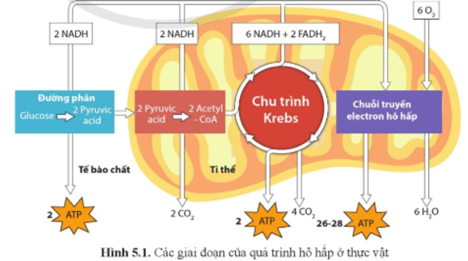 2. Dựa vào hình 5.1, trình bày các giai đoạn của quá trình hô hấp của thực vật.