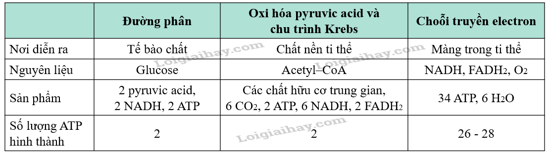 Dựa vào diễn biến từng giai đoạn của quá trình hô hấp tế bào.