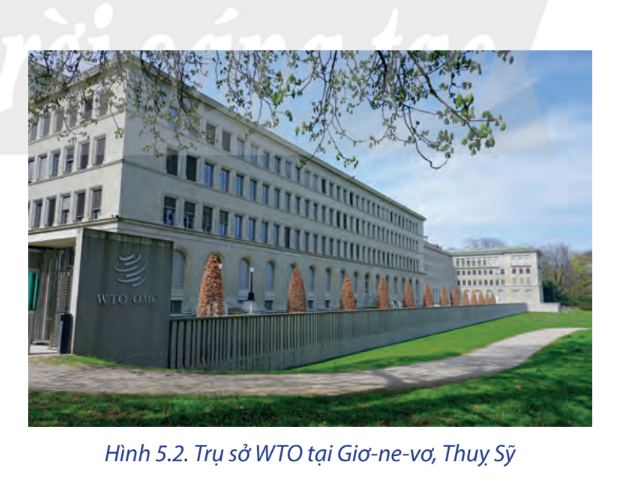 Dựa vào hình 5.2 và thông tin trong bài, hãy trình bày về Tổ chức Thương mại Thế giới.