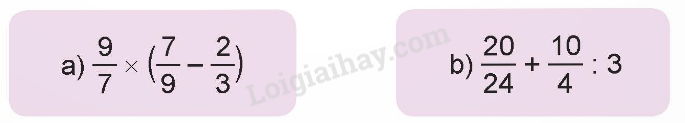 a) $\frac{9}{7} \times \left( {\frac{7}{9} – \frac{2}{3}} \right) = \frac{9}{7} \times \left( {\frac{7}{9} – \frac{6}{9}} \right) = \frac{9}{7} \times \frac{1}{9} = \frac{9}{{63}} = \frac{1}{7}$