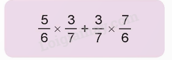 $\frac{5}{6} \times \frac{3}{7} + \frac{3}{7} \times \frac{7}{6} = \frac{3}{7} \times \left( {\frac{5}{6} + \frac{7}{6}} \right) = \frac{3}{7} \times \frac{{12}}{6} = \frac{3}{7} \times 2 = \frac{6}{7}$