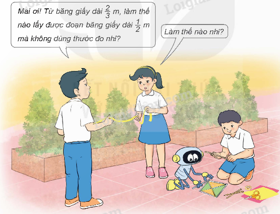 Vậy ta cần cắt băng giấy ban đầu đi $\frac{1}{6}$ m thì được băng giấy dài $\frac{1}{2}$ m.