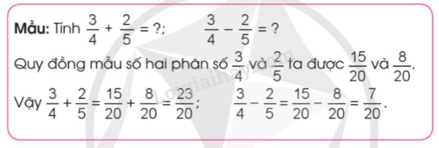 Muốn cộng (hoặc trừ) hai phân số khác mẫu số ta quy đồng mẫu số hai phân số đó, rồi cộng (hoặc trừ) hai phân số đã quy đồng mẫu số.