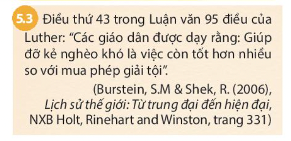 – Nội dung cơ bản của các cuộc cải cách tôn giáo là gì? Theo em, tư liệu 5.2 và 5.3 thể hiện nội dung nào của cải cách?