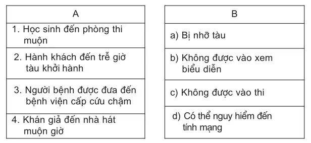 Hãy nối mỗi trường hợp ở cột A với kết quả ở cột B cho phù hợp.