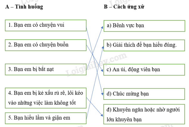 Nối mỗi tình huống ở cột A với một cách ứng xử ở cột B cho phù hợp