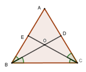 Vì \(BD\) và \(CE\) là tia phân giác của góc \(\widehat {ABC}\) và \(\widehat {ACB}\) nên \(\widehat {ABD} = \widehat {CBD}\) và \(\widehat {ACE} = \widehat {BCE}.\)