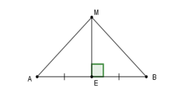 Đường trung trực của \(AB\) vuông góc với \(AB\) tại trung điểm \(E\) . Do đó \(ME \bot AB;\,EA = EB.\)