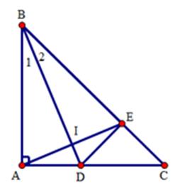 Cho tam giác \(ABC\) vuông tại \(A.\) Tia phân giác của góc \(ABC\) cắt \(AC\) tại \(D,\) lấy \(E\) trên cạnh \(BC\) sao cho \(BE = AB.\)