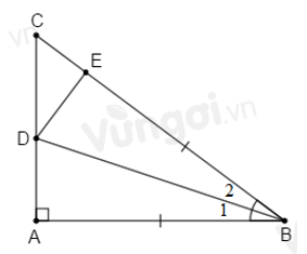 Xét hai tam giác $BDA$  và $BDE$  có:$BA = BE\left( {gt} \right),$ \(\widehat {{B_1}} = \widehat {{B_2}}\) (do $BD$ là tia phân giác của góc B);