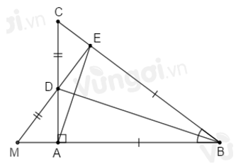 Từ câu trước ta có \(\Delta ABD = \Delta CBD\,\left( {c – g – c} \right)\)\( \Rightarrow \widehat {BCA} = \widehat {BAC}\) (hai góc tương ứng) (1)