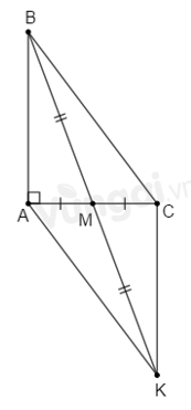 Cho tam giác \(ABC\) có \(\widehat A = {90^0},M\) là trung điểm \(AC.\) Trên tia đối của tia \(MB\) lấy \(K\) sao cho \(MK = MB.\) Chọn câu đúng nhất: