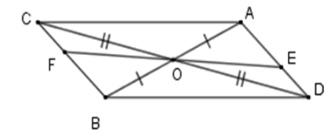 Cho hai đoạn thẳng \(AB\) và \(CD\) cắt nhau tại \(O\) là trung điểm của mỗi đoạn thẳng đó. Lấy \(E;\,F\) lần lượt là điểm thuộc đoạn \(AD\) và \(BC\) sao cho \(AE = BF.\) Cho \(OE = 2cm\), tính \(EF.\)