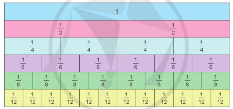 a) Quan sát hình vẽ, nêu các cặp phân số bằng nhau: