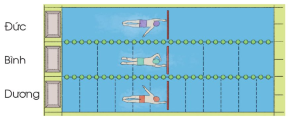 Nêu phân số chỉ số phần quãng đường mà mỗi người đã bơi được trong hình vẽ sau và nhận xét: