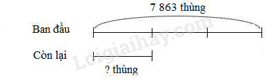 Một tàu chở 7 863 thùng hàng. Người ta dỡ xuống một số thùng hàng thì số thùng hàng còn lại bằng số thùng hàng ban đầu giảm đi 3 lần. Hỏi trên tàu còn lại bao nhiêu thùng hàng?