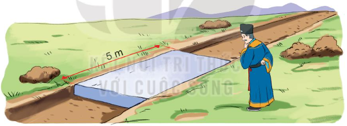Một vị quan dùng những khối đá giống nhau dạng khối hộp chữ nhật để lát một con đường dài 4 555 m. Hình chữ nhật ở mặt trên mỗi khối đá đó có chiều dài 5 m.