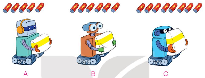 Ta có Rô-bốt A lắp số pin ít nhất nên Rô-bốt A nhẹ nhất.