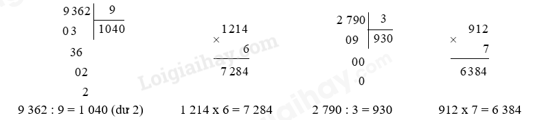 – Với phép chia ta thực hiện lần lượt từ trái sang phải.