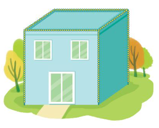 Quan sát tranh ta thấy ngôi nhà này có 4 cạnh sát mặt đất không cần gắn dây đèn.