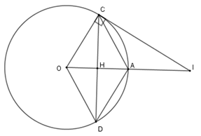Xét tứ giác $OCAD$ có hai đường chéo $OA$ và $CD$ vuông góc với nhau và giao nhau tại trung điểm $H$ mỗi đường nên $OCAD$ là hình thoi.