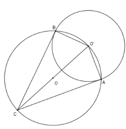 Do đó $AB,BC$ là hai tiếp tuyến của $\left( {O’} \right)$ nên $AC = CB$ (tính chất hai tiếp tuyến cắt nhau)