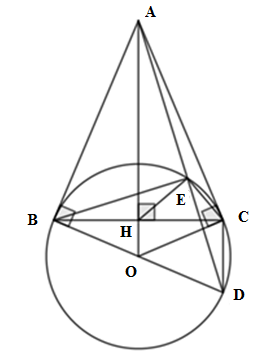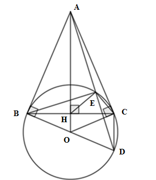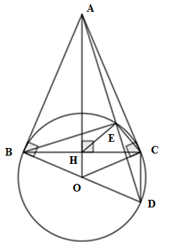 Lại có $AO \bot AE$ (tính chất tiếp tuyến ) nên $AE{\rm{//}}BC$