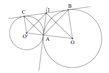 Tam giác \(OIO’\) vuông tại \(I\) có \(IA\) là đường cao nên \(I{A^2} = AO.AO’ = 9.4 = 36 \Rightarrow IA = 6cm\).