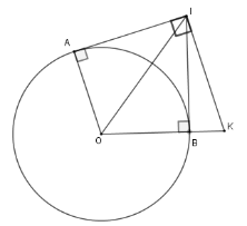 Hai tiếp tuyến tại $A$ và $B$ của đường tròn $(O)$ cắt nhau tại $I$ . Đường thẳng qua $I$ và vuông góc với $IA$ cắt $OB$ tại $K$. Chọn khẳng định đúng.