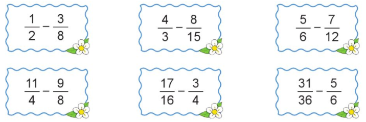 Muốn trừ hai phân số khác mẫu số, ta quy đồng mẫu số của hai phân số, rồi trừ hai phân số đó.
