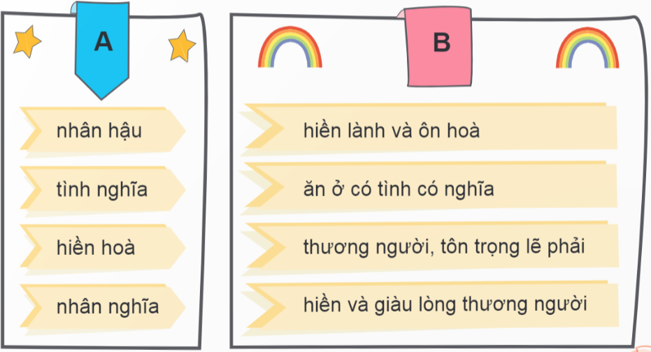 Chọn mỗi lời giải nghĩa ở cột B với một từ phù hợp ở cột A