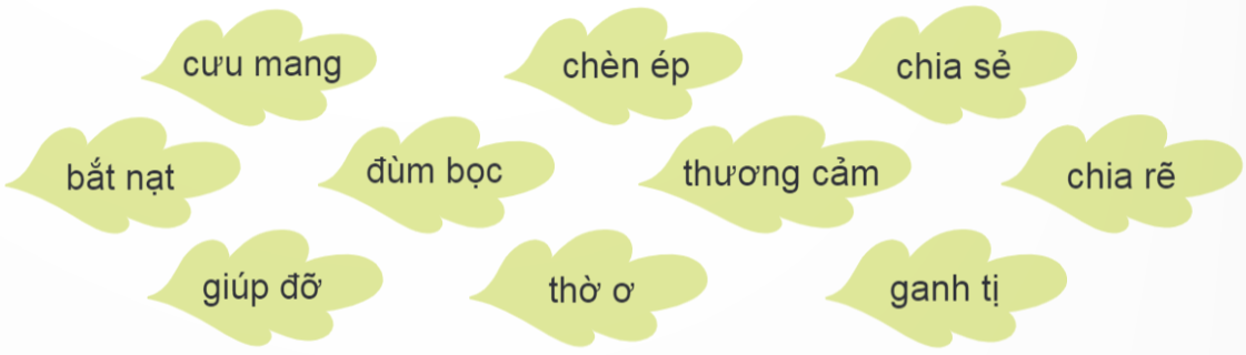 a. Chỉ hành động, thái độ tốt: cưu mang, chia sẻ, đùm bọc, thương cảm, giúp đỡ
